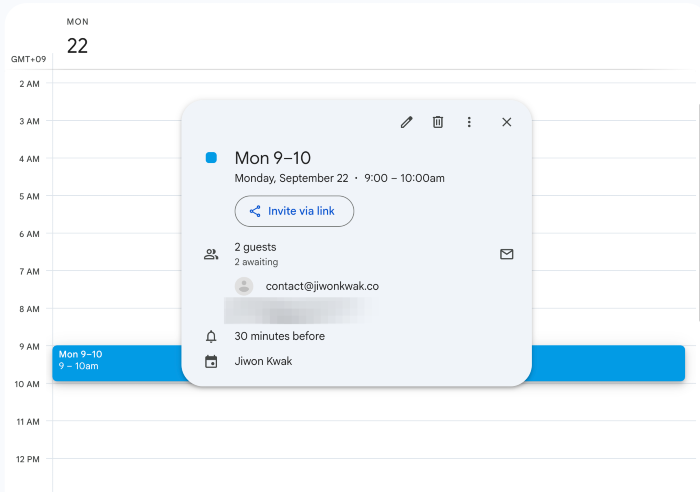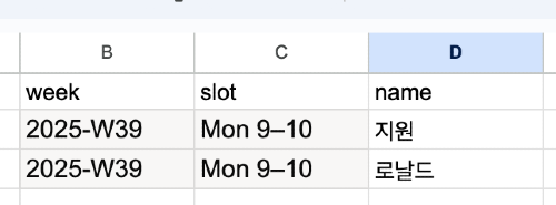 간단한 HTML 폼으로 신청을 받으면 구글 시트에 기록되고, 다음 주 캘린더 슬롯에 게스트가 자동으로 추가된다. 이로써 수작업이 크게 줄었다.