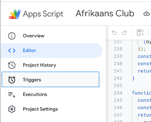 - Apps Script > Triggers (시계 아이콘) >
