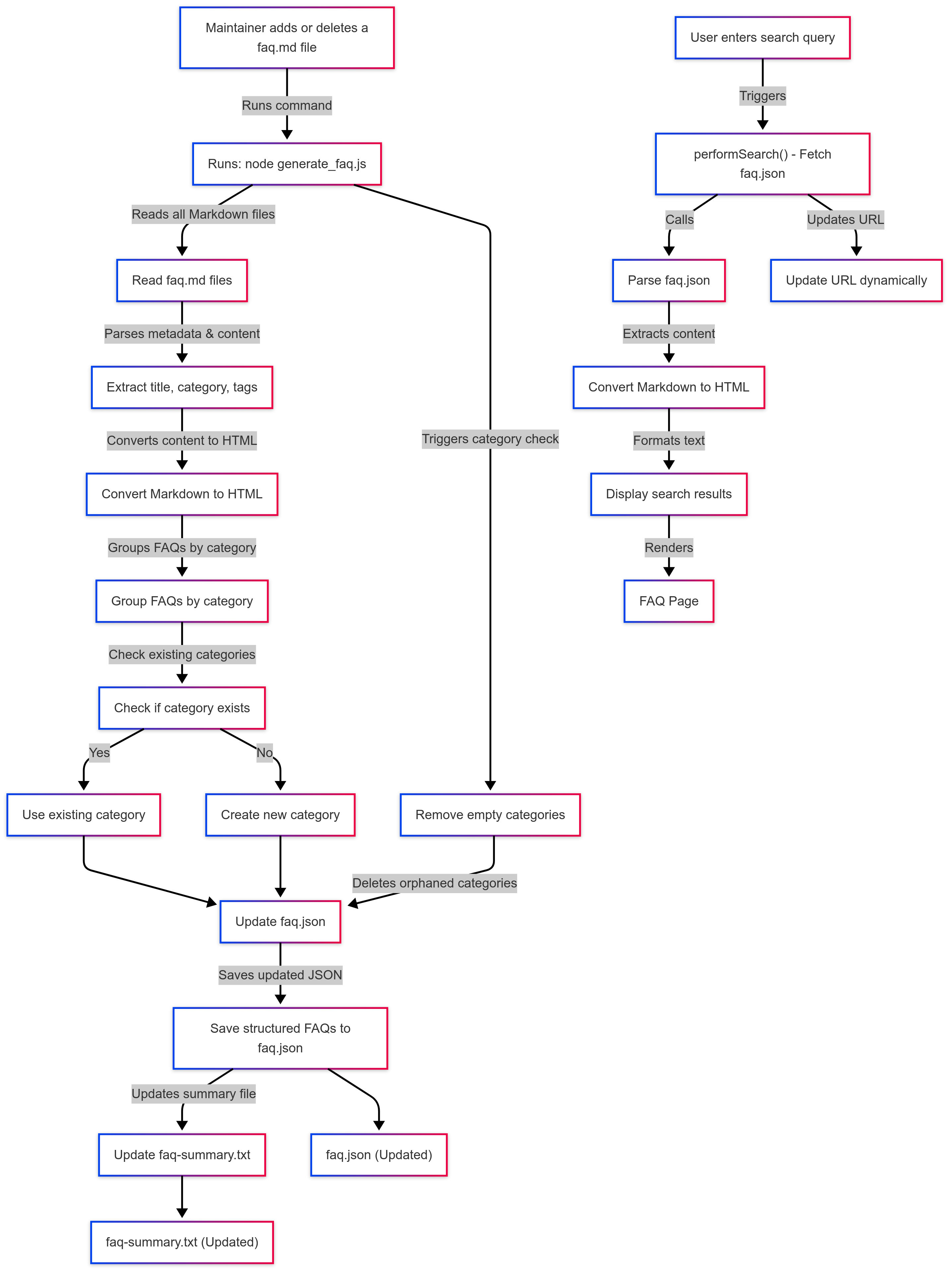 No manual updates. No missing FAQs. I built a system where each .md file contains a category field in front matter, and a Node.js script auto-updates the UI.