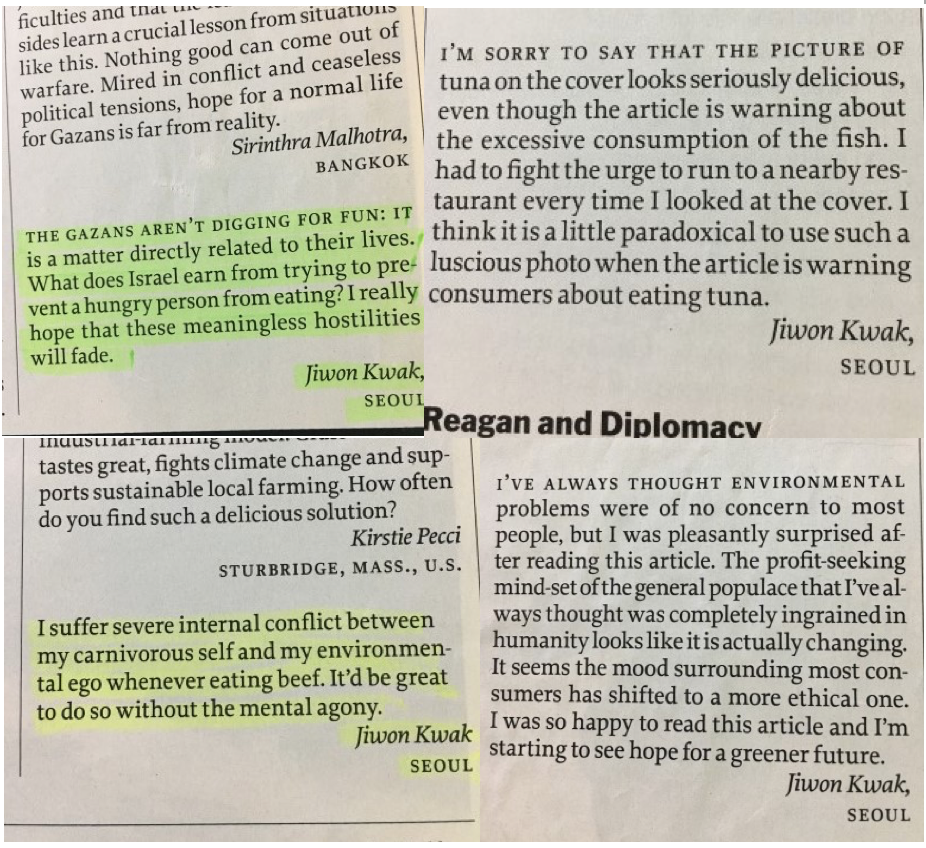 그 시절의 은밀한 취미는 TIME지에 독자 기고문을 보내는 것이었다.
