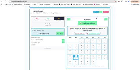 그래서 날짜/작업량 계산 로직을 구현하고, 몇 번의 테스트를 거쳐 UX를 개선, 데이터베이스와 Authentication을 연동한 뒤 Reddit 번역가 포럼에 공유했다.